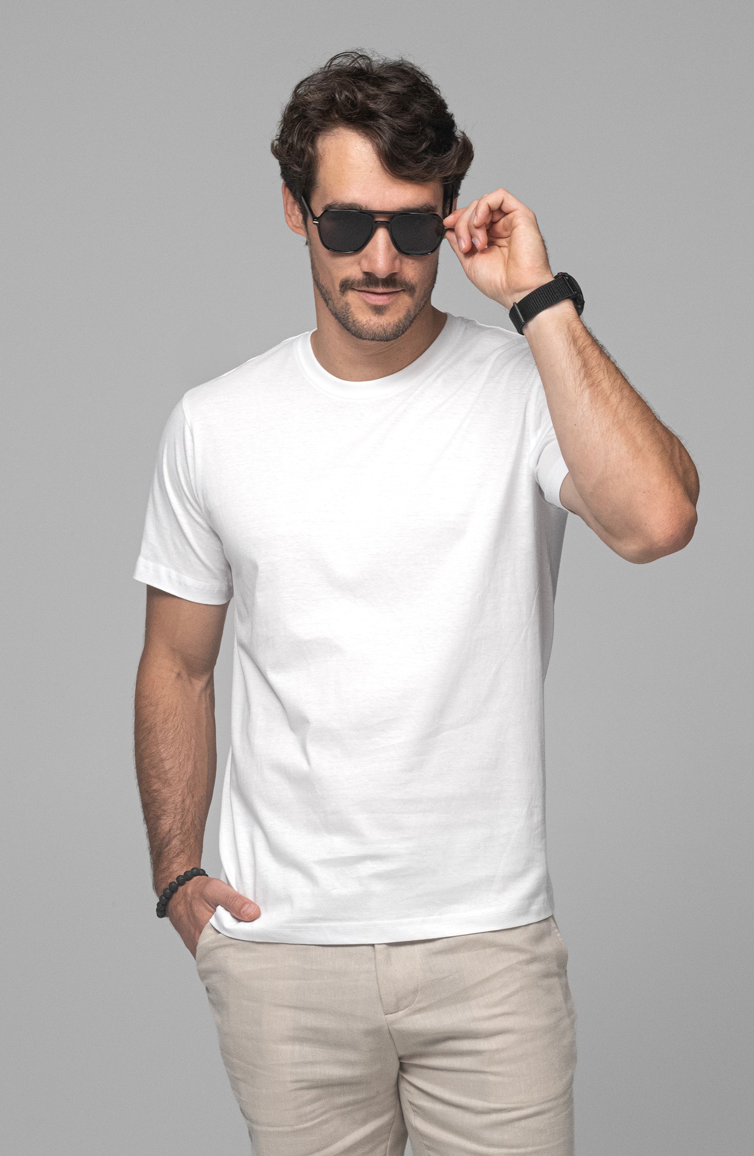 95% wysokogatunkowa bawełna czesana ring-spun, 5% Elastan, kolor 34: 85% bawełna, 10% wiskoza, 5% elastan